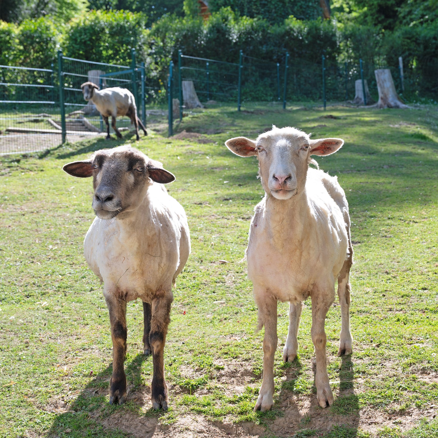Coburger Fuchsschafen, Mischlingen aus Coburger Fuchs & Merino, Suffolkschafen, Zwartbles-Schafen und Alpakas –